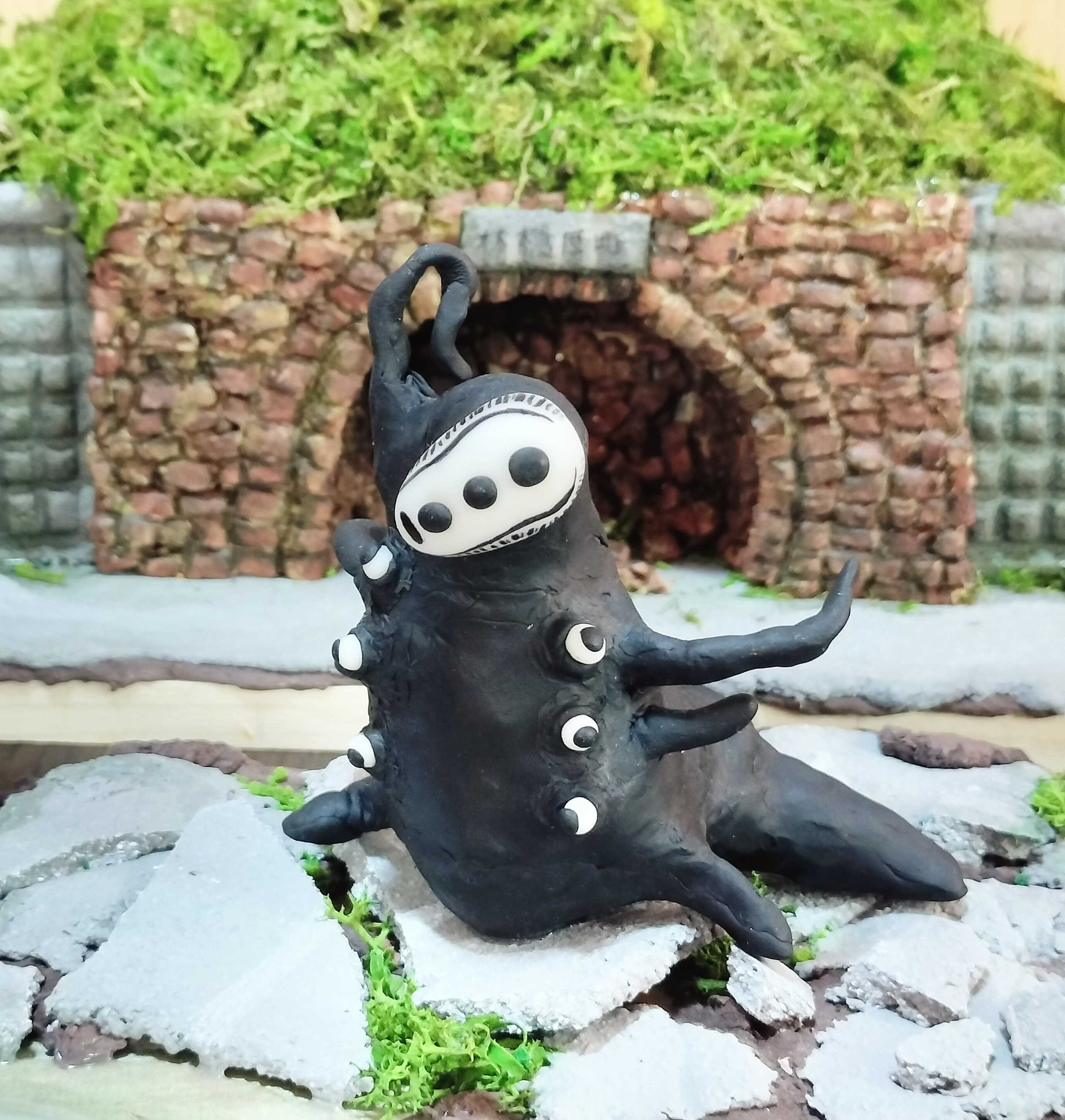 トンネル全体は粘土で作り、中に半分にした紙コップを置く。